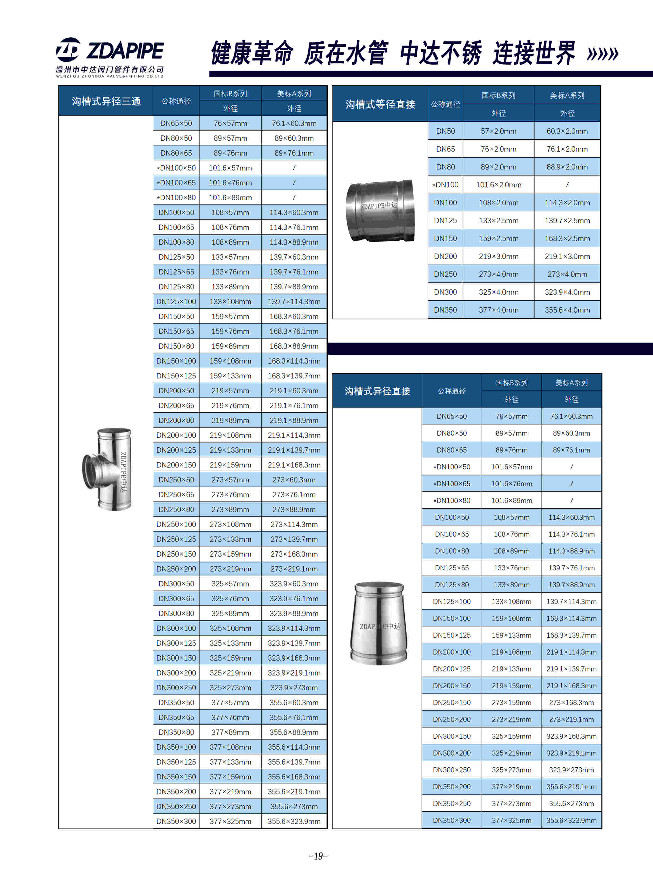 不銹鋼溝槽管件廣泛應用于市政自來(lái)水管道工程,新建小區直飲水工程,工業(yè)與民用 建筑、賓館、公共建筑、睬氣供應等分供水系統。給水,排水,二次供水,太陽(yáng)能,水務(wù)工程,自來(lái)水公司,醫院,學(xué)校,酒店,賓館,天然氣工程,自來(lái)水工程,直飲水工程,家裝水管工程,工業(yè)管道工程,水處理工程,清潔能源工程,綠色能源,健康革命,質(zhì)在水管,中達不銹,連接世界。